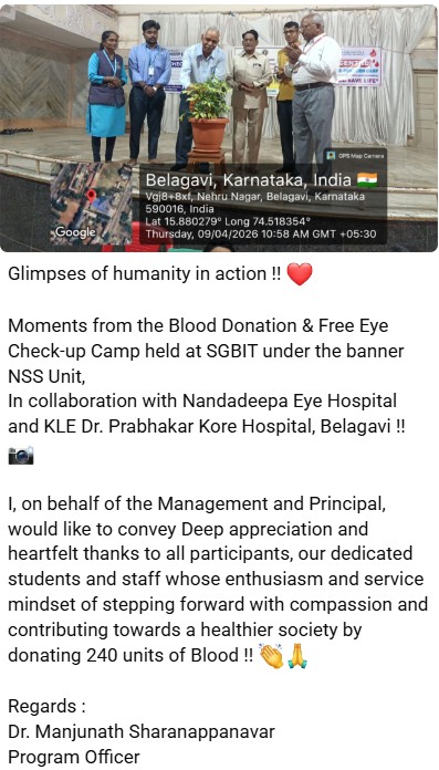 Blood Donation & Free Eye Check-up Camp held at SGBIT under the banner NSS Unit